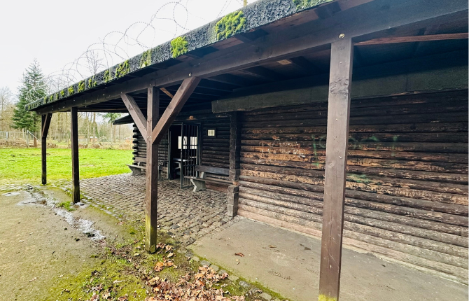 Am Wildgehege im Grevenbroicher Stadtwald befindet sich eine Grillhütte mit Innen- und Außengrill, die in der Zeit von April bis Oktober gemietet werden kann. Gerade bei Familien, Schulklassen und Kindertagesstätten erfreut sie sich großer Beliebtheit.